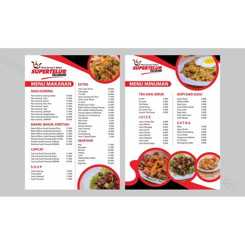 Jasa desain menu (segala ukuran) 1 pilihan .